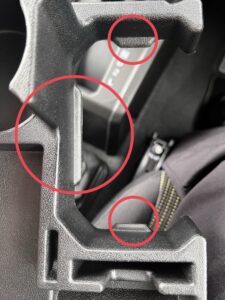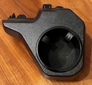 次に、ドリンクホルダー本体の爪をパネルの隙間に合わせ、奥までしっかり押し込みます。