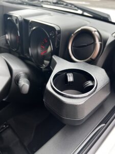 ジムニー純正のドリンクホルダーは数も少なく位置もやや不便。