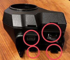 コンソールトレイ裏側には、3か所の爪があります。